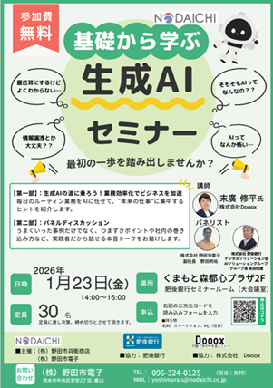「基礎から学ぶ 生成AIセミナー(参加費無料)」を開催いたします。